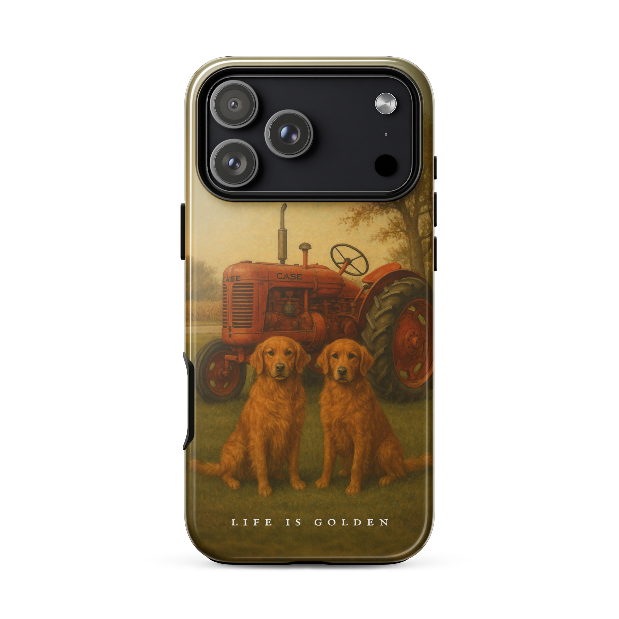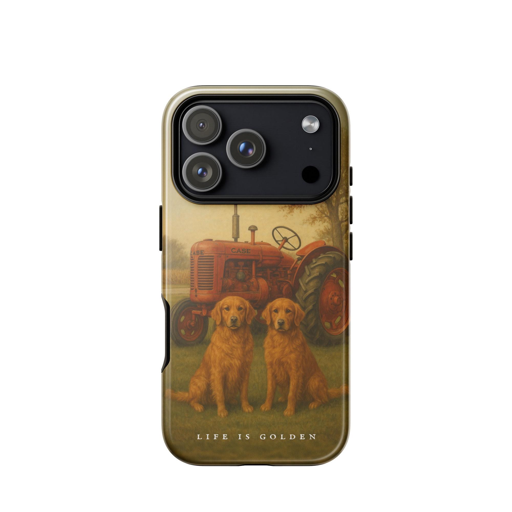 For those who know the unmistakable hum of a vintage SC and the satisfaction of greasing every fitting by hand — this one’s for you. A tribute to simpler times and timeless machines, this design pairs the reliability of a Case tractor with the loyalty of two golden retrievers.
