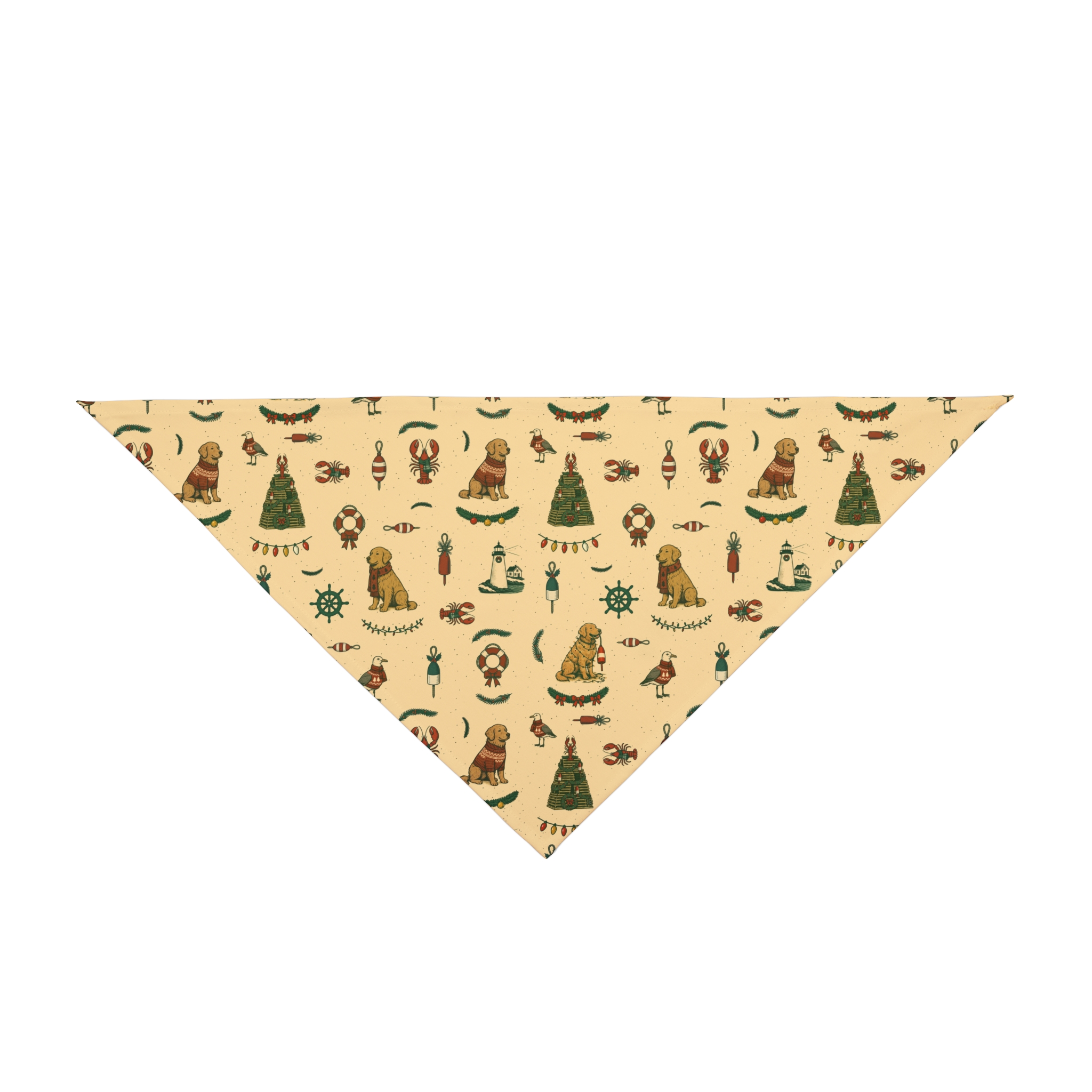 New England Coastal Christmas Dog Bandana – Golden Retriever Edition